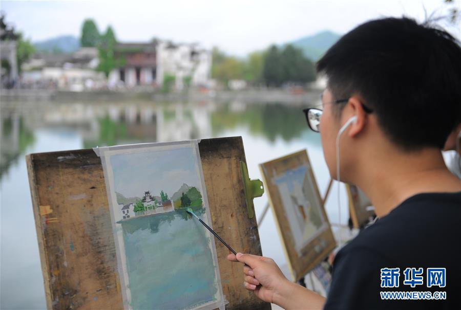 4月24日,繪畫愛好者在西遞風景區(qū)寫生。新華社記者任鵬飛攝