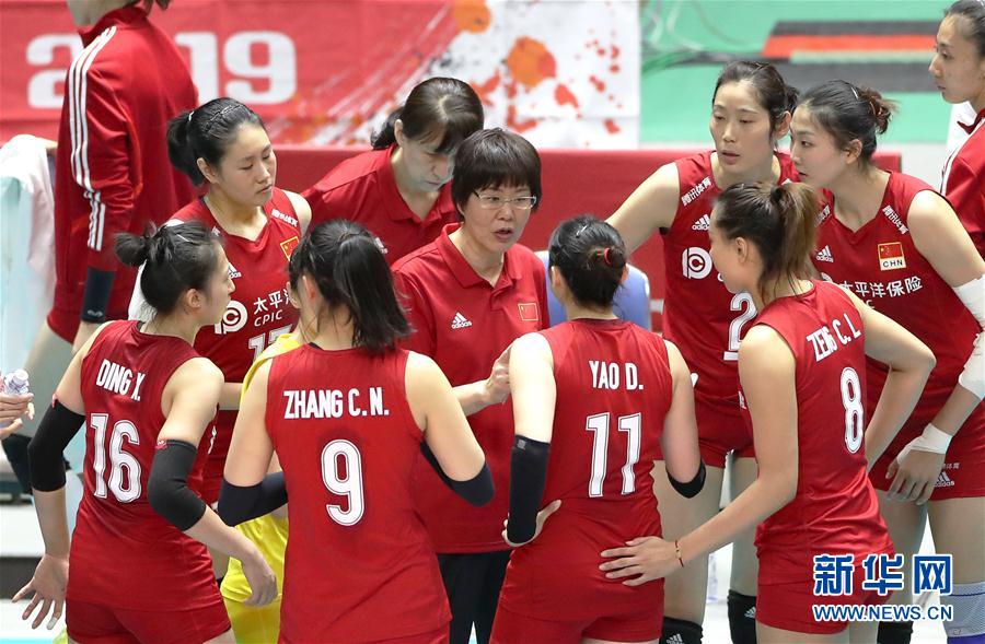 9月23日,中國隊主教練郎平(中)在比賽間隙指導(dǎo)球員。當(dāng)日,在日本札幌舉行的2019年女排世界杯賽第二階段A組循環(huán)賽中,中國隊以3比0戰(zhàn)勝美國隊。新華社記者杜瀟逸攝