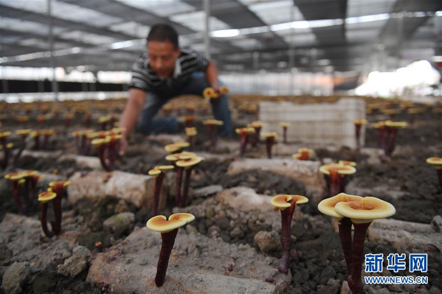 9月25日,在福建省南平市浦城縣蓮塘鎮(zhèn)山橋村,技術(shù)員在采摘靈芝。 近年來,福建省南平市浦城縣利用當(dāng)?shù)鬲毺氐纳鷳B(tài)資源,依托特色靈芝產(chǎn)業(yè),發(fā)揮龍頭企業(yè)示范作用,通過公司+基地+貧困戶入股等方式,輻射帶動17個鄉(xiāng)鎮(zhèn)約300戶貧困戶增收。 新華社記者 宋為偉 攝