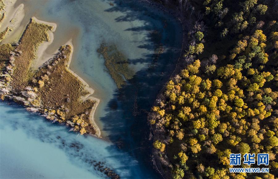 9月25日無(wú)人機(jī)拍攝的喀納斯景區(qū)風(fēng)光。 新華社記者 王菲 攝