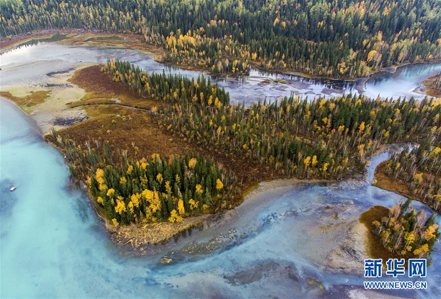9月24日無人機拍攝的喀納斯景區(qū)風光。新華社記者 王菲 攝