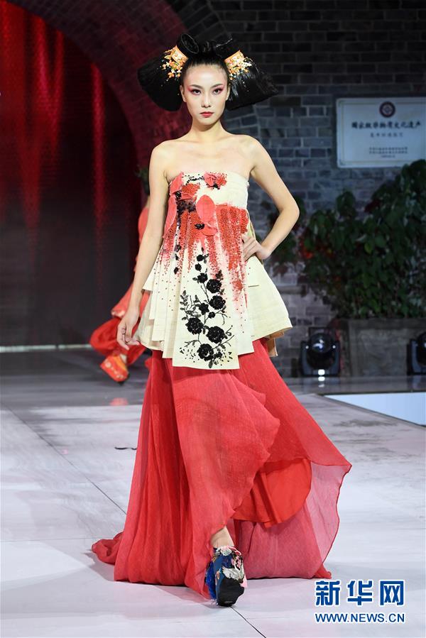 9月25日,模特在榮昌夏布·張義超非遺時(shí)尚大秀上展示時(shí)裝設(shè)計(jì)師張義超的時(shí)裝作品。 新華社記者 唐奕 攝