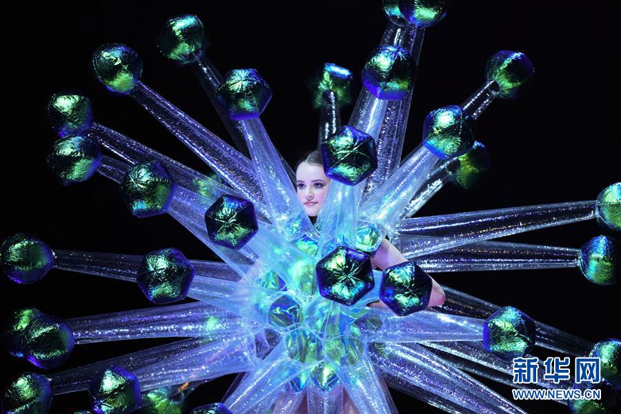 9月26日,在新西蘭首都惠靈頓舉行的世界可穿著藝術(shù)大賽年度秀場表演中,模特展示入圍作品。 新華社記者郭磊攝