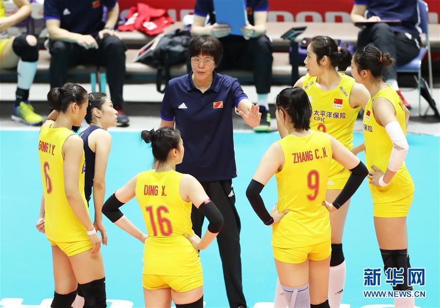 9月23日,中國隊(duì)主教練郎平(中)在比賽間隙指導(dǎo)球員。當(dāng)日,在日本札幌舉行的2019年女排世界杯賽第二階段A組循環(huán)賽中,中國隊(duì)以3比0戰(zhàn)勝美國隊(duì)。新華社記者杜瀟逸攝