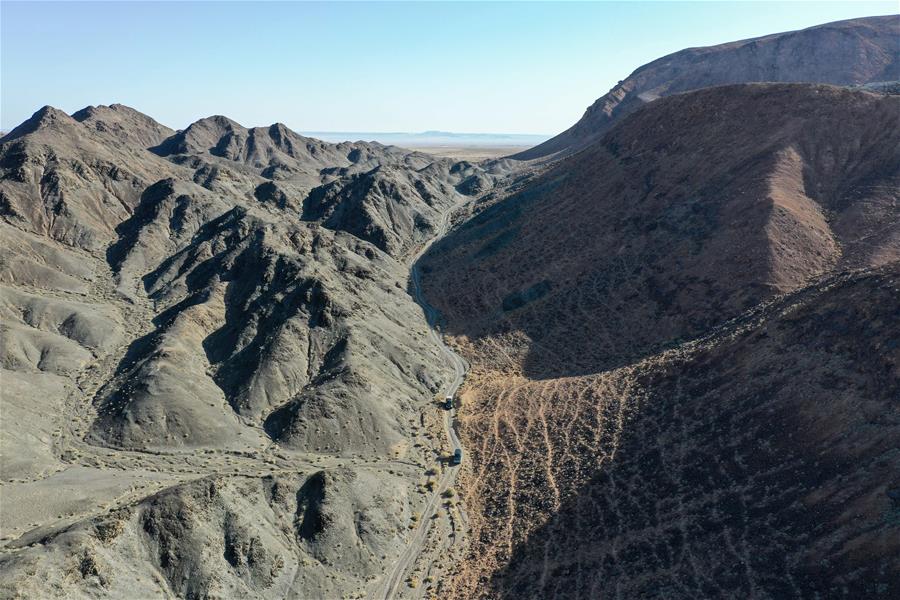 9月25日,內(nèi)蒙古自治區(qū)額濟(jì)納旗算井子邊境派出所的民警開車對轄區(qū)進(jìn)行巡護(hù)(無人機(jī)拍攝)。新華社記者劉磊攝