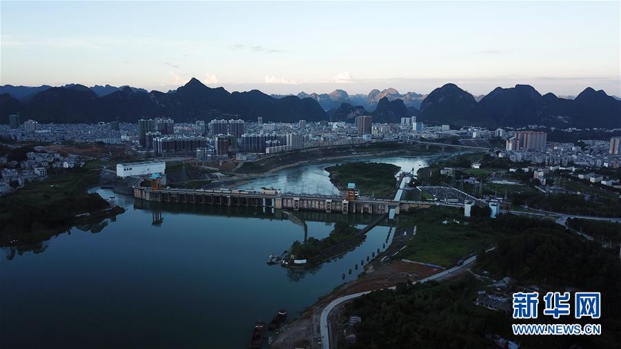 這是位于廣西大化縣境內的大化水電站(9月19日無人機拍攝)。新華社記者張愛林攝