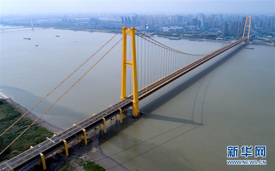 10月8日,武漢楊泗港長(zhǎng)江大橋正式通車(無(wú)人機(jī)拍攝)。當(dāng)日,長(zhǎng)江上首座雙層公路大橋——武漢楊泗港長(zhǎng)江大橋正式投入使用。楊泗港長(zhǎng)江大橋全長(zhǎng)4.13公里,主跨1700米,一跨過(guò)長(zhǎng)江。大橋上層為城市快速路,雙向6車道,設(shè)計(jì)行車時(shí)速80公里;下層為城市主干道,雙向6車道,設(shè)計(jì)行車時(shí)速60公里。新華社記者熊琦攝