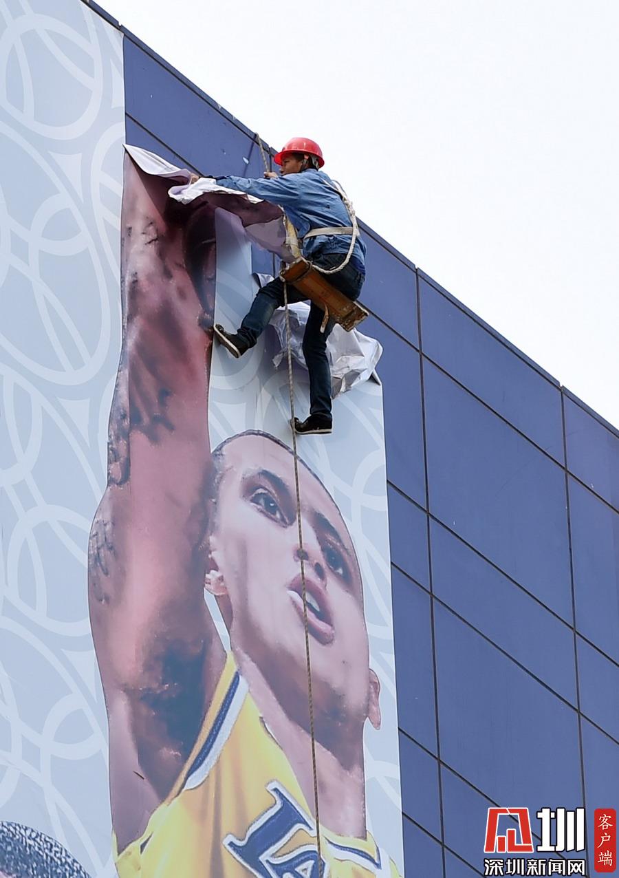 “2019NBA球迷之夜”取消,上海正大廣場外圍巨幅NBA中國賽海報被拆除。