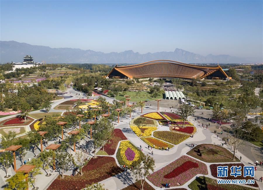 這是北京世園會園區(qū)一角(10月7日無人機拍攝)。新華社記者鞠煥宗攝