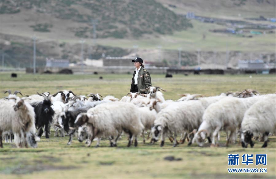 堅(jiān)熱益西在自家牧場(chǎng)放羊(7月13日攝)。新華社記者普布扎西攝