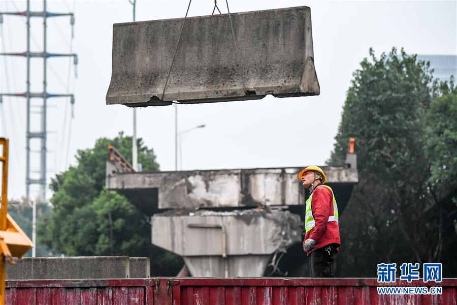 10月12日,錫港路恢復(fù)通車(chē)前,施工人員在進(jìn)行路面清理工作。新華社記者 李博 攝