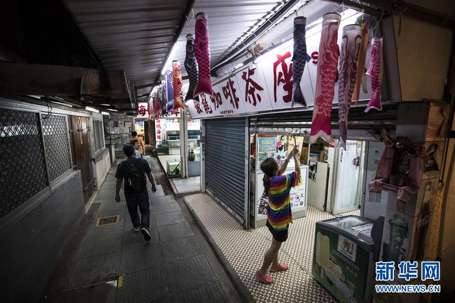 這是10月11日晚拍攝的鯉魚(yú)門(mén)社區(qū),李凱瑚的茶餐廳就坐落于此。新華社記者 盧燁 攝