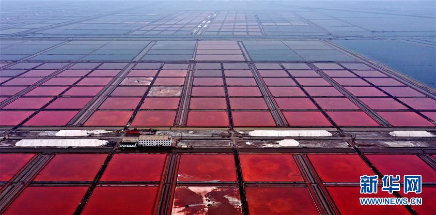這是進(jìn)入收獲季節(jié)的魯北鹽場(10月9日無人機(jī)拍攝)。新華社記者 朱崢 攝