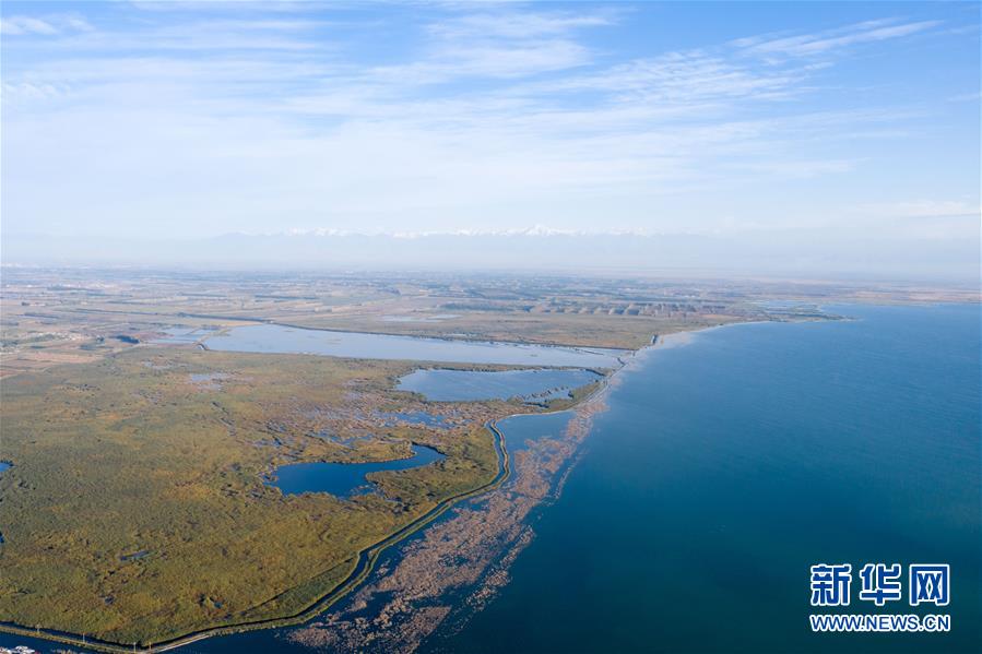 這是新疆博斯騰湖美景(10月12日無(wú)人機(jī)拍攝)。入秋以來(lái),新疆博斯騰湖碧波蕩漾,美景如畫(huà),吸引各地游客前來(lái)游玩。新華社記者丁磊攝
