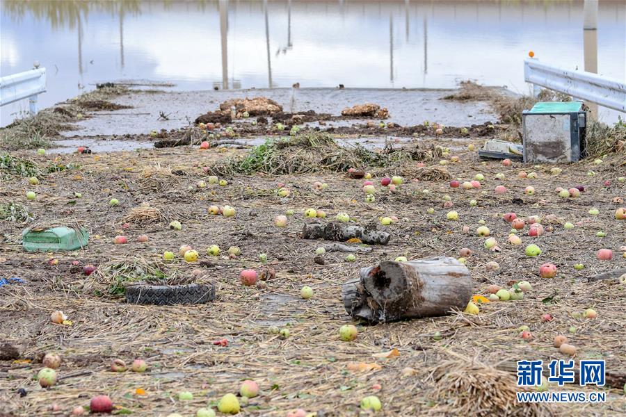 10月14日,在日本長野市,千曲川決堤后,水流侵襲了附近的蘋果樹。受縱貫東日本強臺風“海貝思”帶來的強降雨影響,日本多地暴發(fā)洪災,已造成33人死亡、19人失蹤。據日本共同社13日統(tǒng)計,“海貝思”過境導致日本多處河流泛濫,目前有21條河流決堤24處。其中,流經長野縣的千曲川決堤,造成長野市和千曲市大范圍被淹,大片住宅區(qū)被洪水包圍,有的房屋甚至被淹至2層。新華社記者華義攝