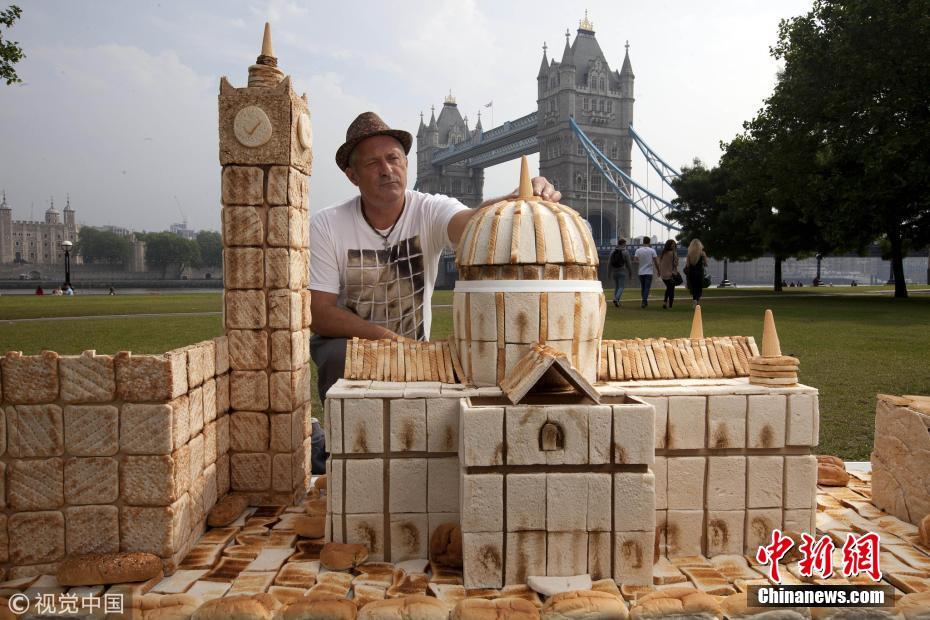 藝術(shù)家用面包等烘焙食品打造微縮倫敦地標(biāo)建筑。圖片來(lái)源:視覺(jué)中國(guó)