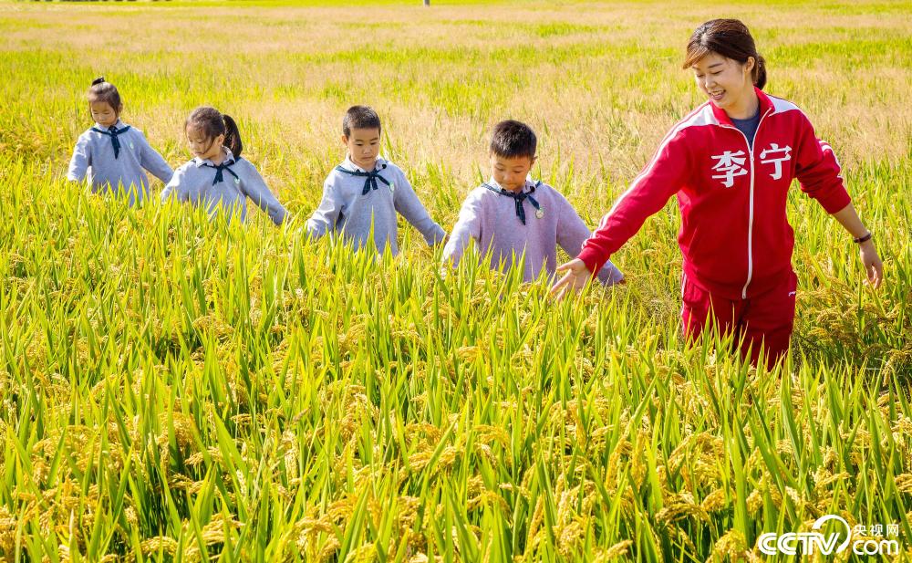 2019年10月15日,浙江省湖州市長興縣開發(fā)區(qū)實驗幼兒園的老師帶領(lǐng)孩子們走進(jìn)稻田,感受豐收的喜悅。圖片來源:視覺中國