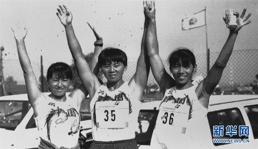1995年9月12日,在羅馬舉行的第一屆世界軍人運(yùn)動(dòng)會(huì)軍事五項(xiàng)比賽中,中國(guó)人民解放軍代表隊(duì)包攬了男女團(tuán)體和個(gè)人四枚金牌以及男子個(gè)人銀牌、銅牌和女子個(gè)人銅牌。這是獲得女子團(tuán)體冠軍的王戀英、邵文芳和宋麗芳(右起)獲勝后振臂歡呼。新華社記者王繼雨攝
