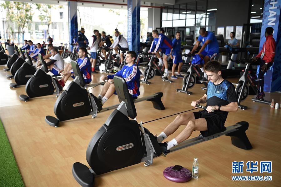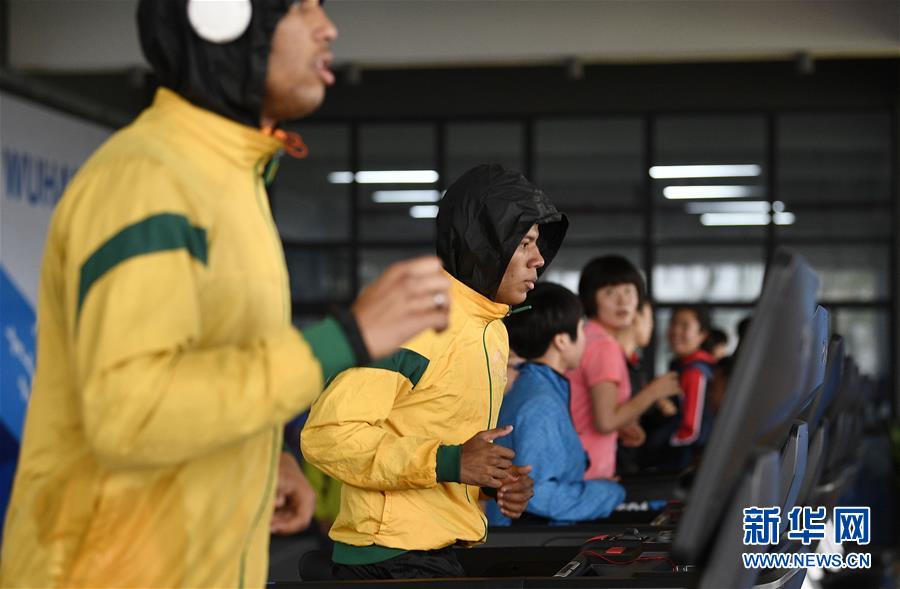 10月16日,運(yùn)動(dòng)員在軍運(yùn)村內(nèi)的健身中心鍛煉。新華社記者王鵬攝