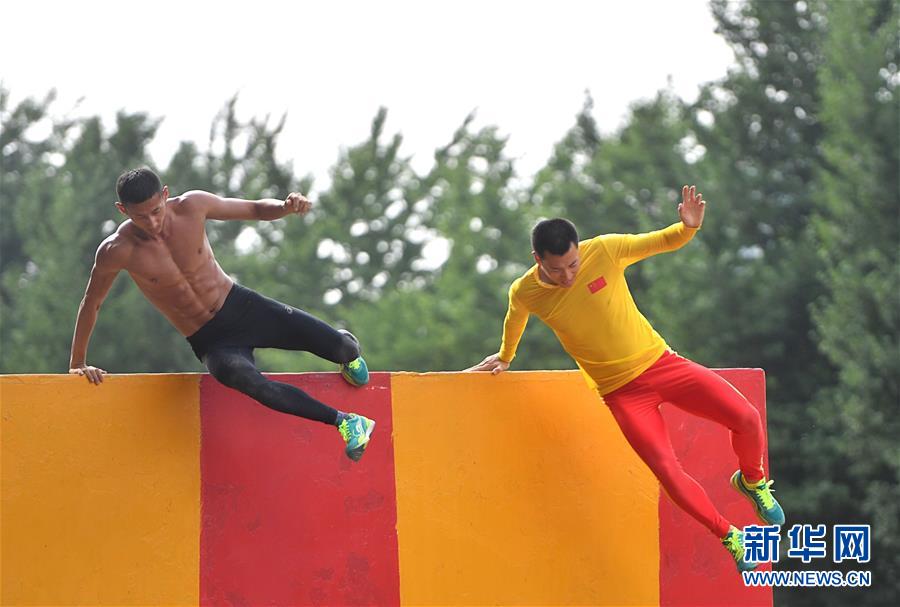 2019年6月28日,八一軍事五項隊男隊員在進(jìn)行500米障礙跑訓(xùn)練。新華社記者熊琦攝