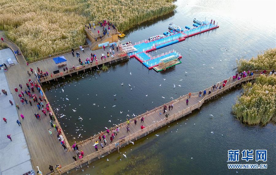 這是10月17日無人機拍攝的居延海碼頭。 新華社記者 彭源 攝