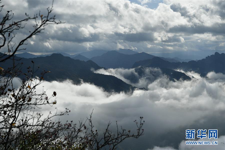 10月17日,游客在漢中市南鄭區(qū)龍頭山風(fēng)景區(qū)拍照。 陜西省漢中市南鄭區(qū)龍頭山風(fēng)景區(qū)位于川陜交界處米倉山主梁。龍頭山景區(qū)常年云霧繚繞,宛如仙境,還有奇石、云海、彩林、霧凇等景觀令游客流連忘返。 新華社記者 張博文 攝