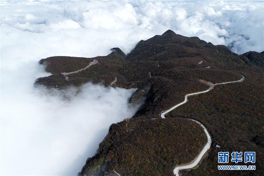 10月17日拍攝的漢中市南鄭區(qū)龍頭山風(fēng)景區(qū)(無人機(jī)拍攝)。 新華社記者 張博文 攝