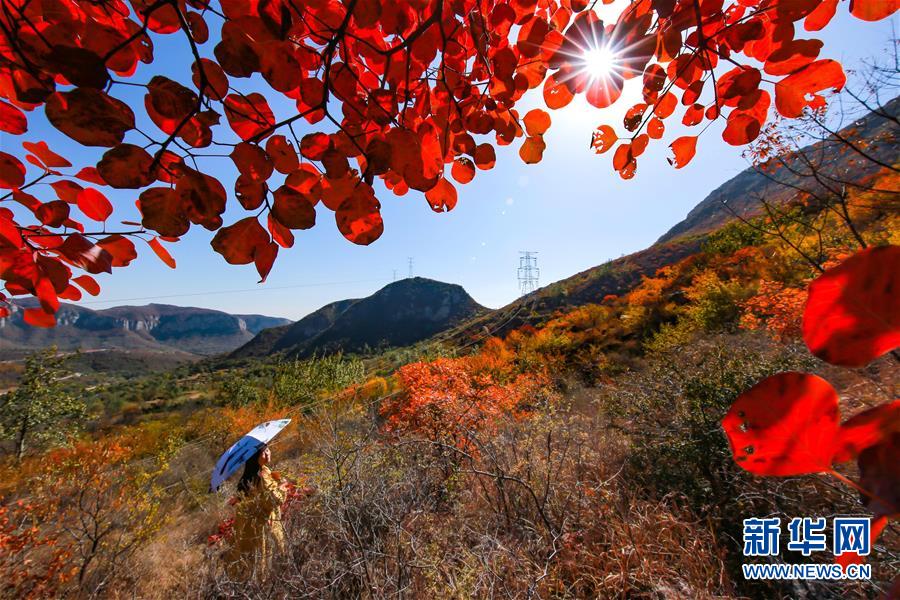 10月24日,游客在河北省武安市賀進鎮(zhèn)后臨河村拍照留念。新華社記者王曉攝