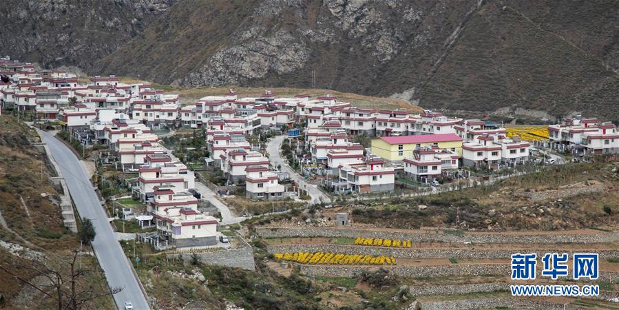 雅康高速瀘定大渡河大橋下的瀘定縣瀘橋鎮(zhèn)咱里村(10月16日攝)。 新華社記者 江宏景 攝