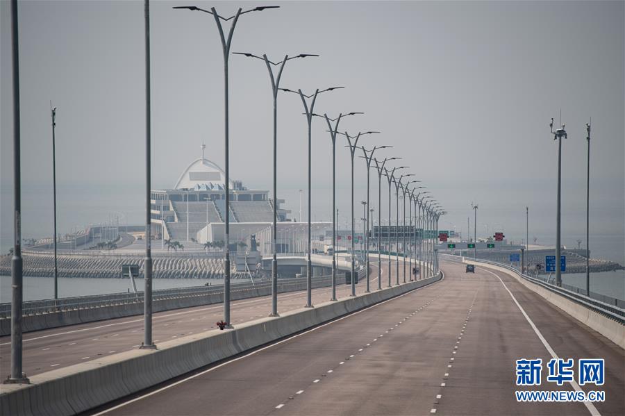 10月24日午后,車輛駛往港珠澳大橋東人工島。2018年10月23日,港珠澳大橋正式開通。新華社記者張金加攝