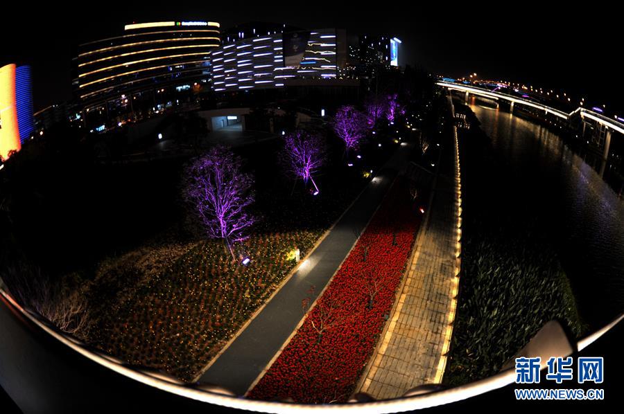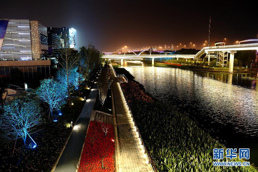 10月25日晚在國家會展中心(上海)附近拍攝的小淶港夜景。新華社記者張建松攝