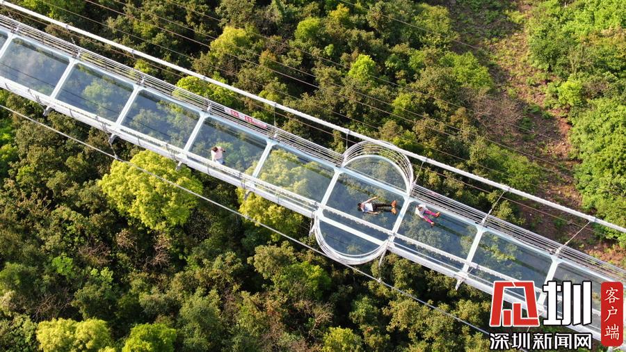 2019年4月24日,湖南張家界大峽谷玻璃橋上,游客們擺出各種姿勢拍照。剛開始,游客們在短暫的恐懼之后,隨之而來的是滿滿的興奮,男女老少紛紛在這座懸在300多米高空中的全透明玻璃橋上不停拍照,從一開始走上橋緊張的不敢踩在玻璃上,到最后在玻璃橋上的各種躺和趴,各種姿勢各種創(chuàng)意各種拍攝,游客們完全忘我地開心游玩。張家界大峽谷玻璃橋,是世界首座斜拉式高山峽谷玻璃橋,玻璃橋全長430米,寬6米,橋身距離谷底垂直落差300米,大橋表面由99塊透明玻璃鋪設(shè)而成,整個工程無鋼筋混凝土橋墩。