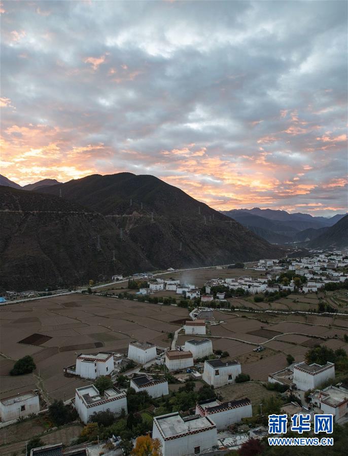 10月30日拍攝的晨曦中的鄉(xiāng)城縣香巴拉鎮(zhèn)色爾宮村藏鄉(xiāng)田園。新華社記者江宏景攝