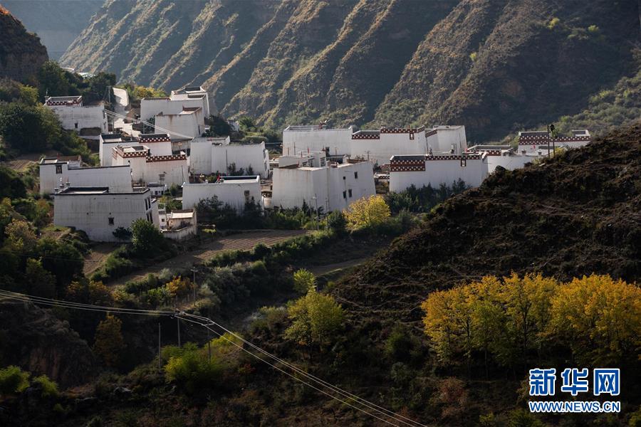 10月30日拍攝的鄉(xiāng)城縣碩曲河谷青麥鄉(xiāng)段藏鄉(xiāng)民居。新華社記者江宏景攝