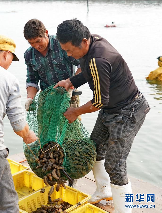 10月30日,樂(lè)亭縣姜各莊鎮(zhèn)一處海參養(yǎng)殖基地的工人將捕撈的海參從漁具中倒出。 新華社記者楊世堯攝