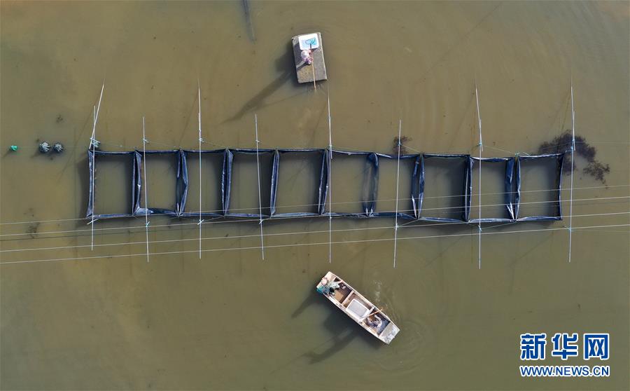 江西省南昌市新建區(qū)象山鎮(zhèn)河林村的農(nóng)戶正在大閘蟹養(yǎng)殖基地進行捕撈(10月29日無人機拍攝)。 時下正值大閘蟹收獲的季節(jié),江西省南昌市新建區(qū)象山鎮(zhèn)河林村的村民忙著進行大閘蟹的捕撈、包裝和外銷工作。近年來,當?shù)匾劳休爡^(qū)內河道縱橫、水田眾多的資源優(yōu)勢,支持鼓勵當?shù)剞r(nóng)村引進發(fā)展大閘蟹養(yǎng)殖業(yè),目前已有大閘蟹特色養(yǎng)殖基地300余畝,年產(chǎn)值超過200萬元,為當?shù)剞r(nóng)戶開辟一條特色養(yǎng)殖的致富路。 新華社記者 彭昭之 攝