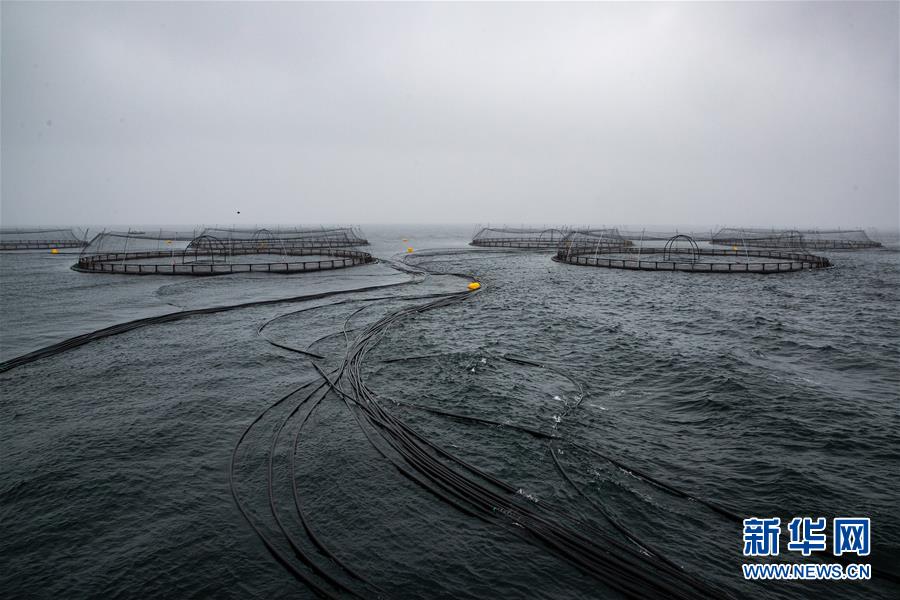 這是9月13日在俄羅斯摩爾曼斯克以北的巴倫支海域拍攝的隸屬于俄羅斯水產(chǎn)養(yǎng)殖公司的鮭魚(yú)養(yǎng)殖場(chǎng)。  新華社記者白雪騏攝