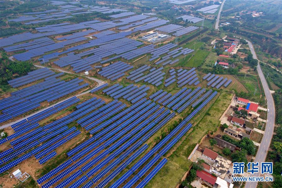 這是7月5日拍攝的山西省運(yùn)城市芮城縣光伏領(lǐng)跑技術(shù)基地(無人機(jī)拍攝)。