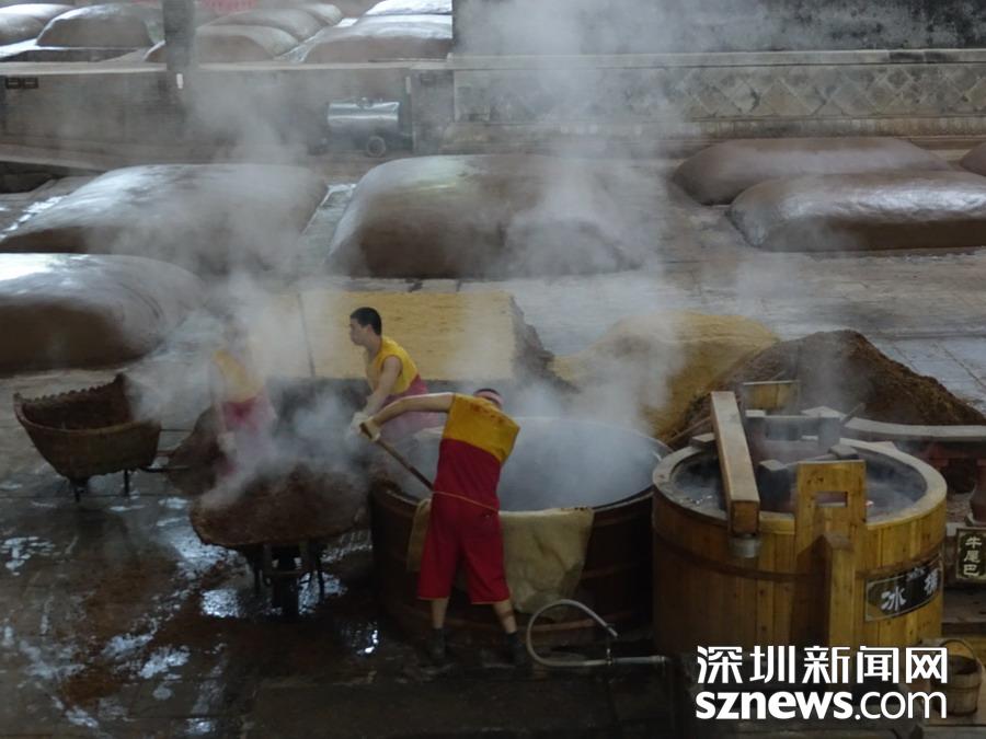 實(shí)拍“酒城”里的釀酒車間沿用古老技藝難得一見