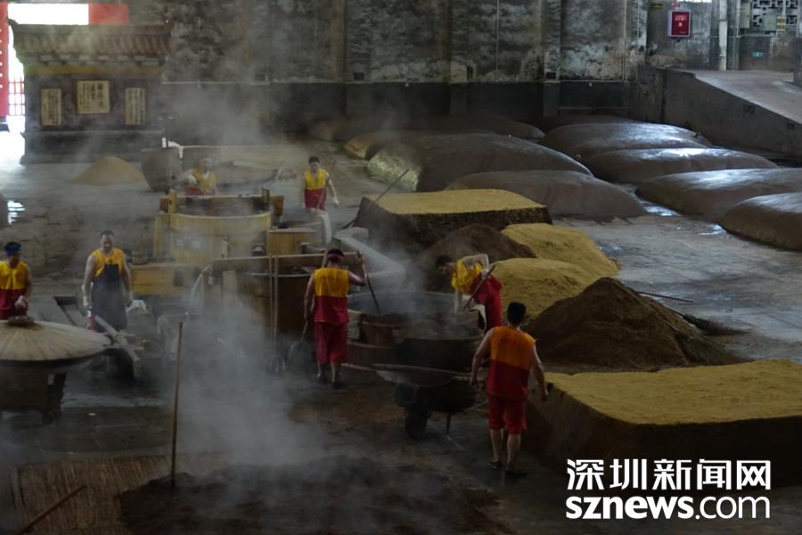 瀘州老窖酒是以泥窖為發(fā)酵容器,中高溫曲為產酒、生香劑,高梁等糧谷為釀酒原料,開放式操作生產,多菌密閉共酵,續(xù)糟配料循環(huán),常壓固態(tài)甑桶蒸餾、精心陳釀勾兌等工藝釀制的白酒,以己酸乙醇為主體香味物質?!盀o州老窖酒傳統(tǒng)釀造技藝”由大曲制造、原酒釀造、原酒陳釀、勾兌嘗評等多方面的技藝。李仁奇攝