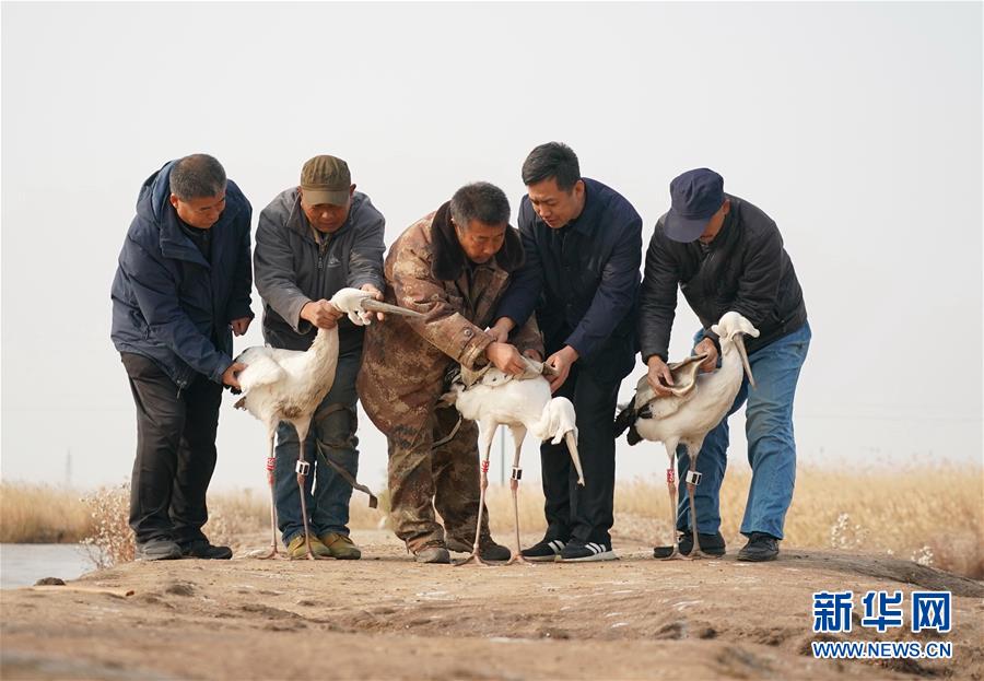 11月16日,在樂亭縣野生動(dòng)物保護(hù)協(xié)會(huì)大清河鳥類救助站,工作人員放飛國家一級(jí)保護(hù)動(dòng)物東方白鸛。新華社記者楊世堯攝