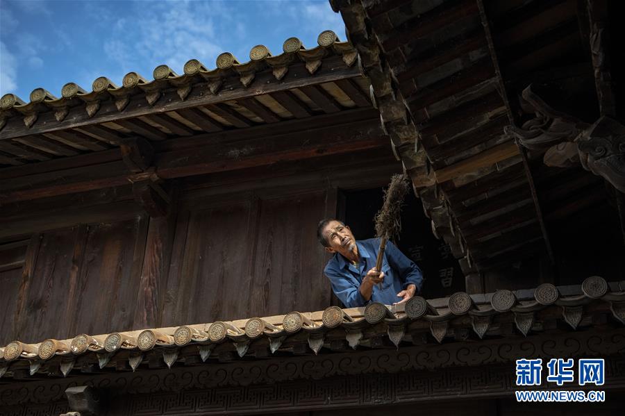 8月23日,流坑古村村民坐在自家院中。新華社記者彭昭之?dāng)z