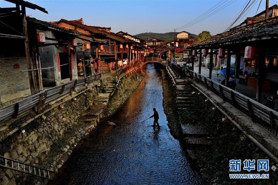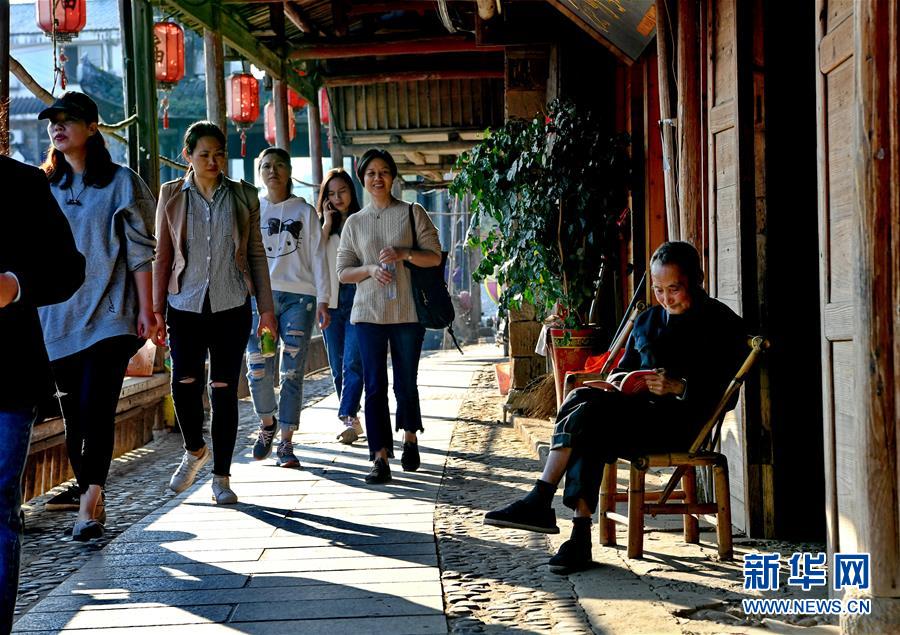 游客在武夷山下梅村游覽(11月5日攝)。福建省武夷山市下梅村是“中國歷史文化名村”,這里歷史悠久,人文薈萃,至今保存著70余幢明清時代的古民居。人工運(yùn)河穿村而過,古民居、涼亭、古街等構(gòu)成了別具特色的江南水鄉(xiāng)風(fēng)景。新華社記者馬平攝
