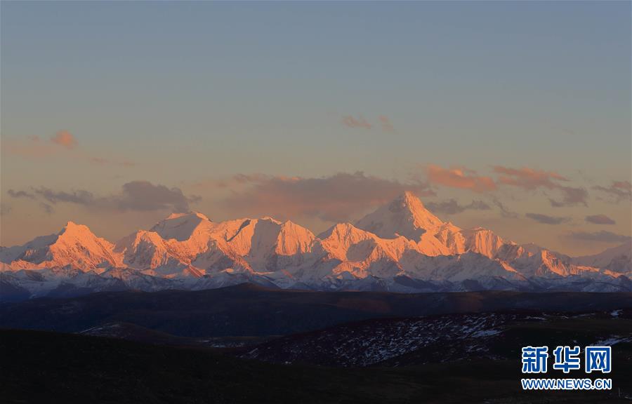 這是在川藏公路四川高爾寺山埡口拍攝的夕陽下的貢嘎雪山(2018年11月9日攝)。新華社記者江宏景攝