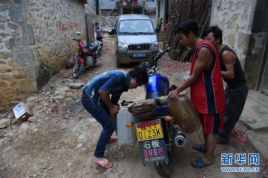 在廣西大化瑤族自治縣板升鄉(xiāng)弄勇村弄朝屯,村民到鄰村運(yùn)水飲用(2015年2月28日攝)。如今,弄朝屯幾乎家家戶戶都修建了家庭水柜。新華社記者黃孝邦攝