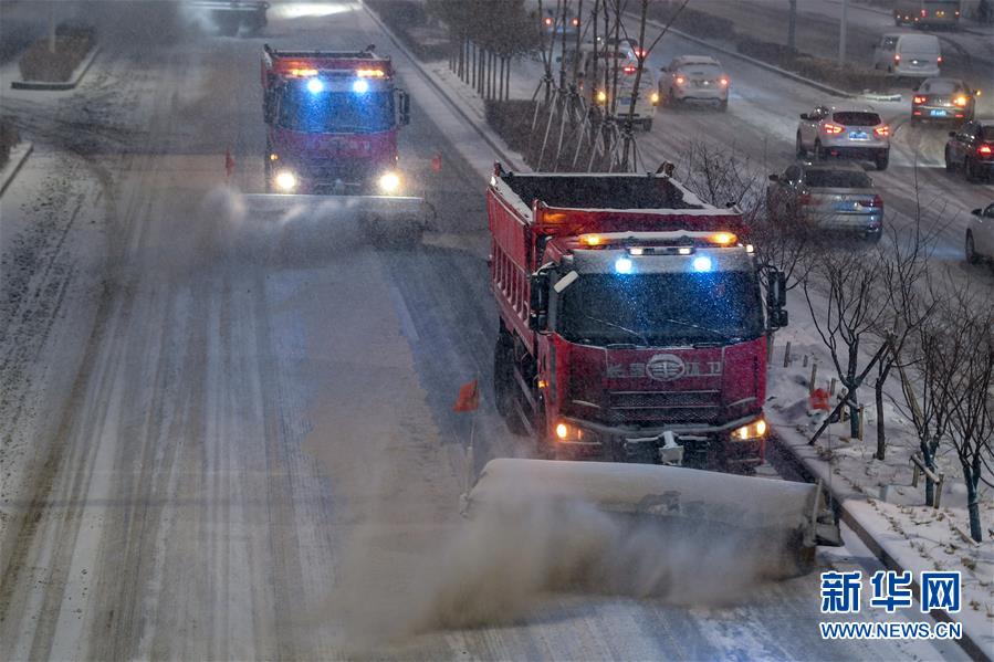 11月17日,在長春市南關(guān)區(qū)衛(wèi)星路快速路上,清雪車輛在清理路面積雪。 新華社記者 張楠 攝