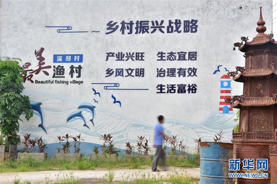 8月22日,福安市溪邳村村民從該村的宣傳欄前走過。新華社記者林善傳攝