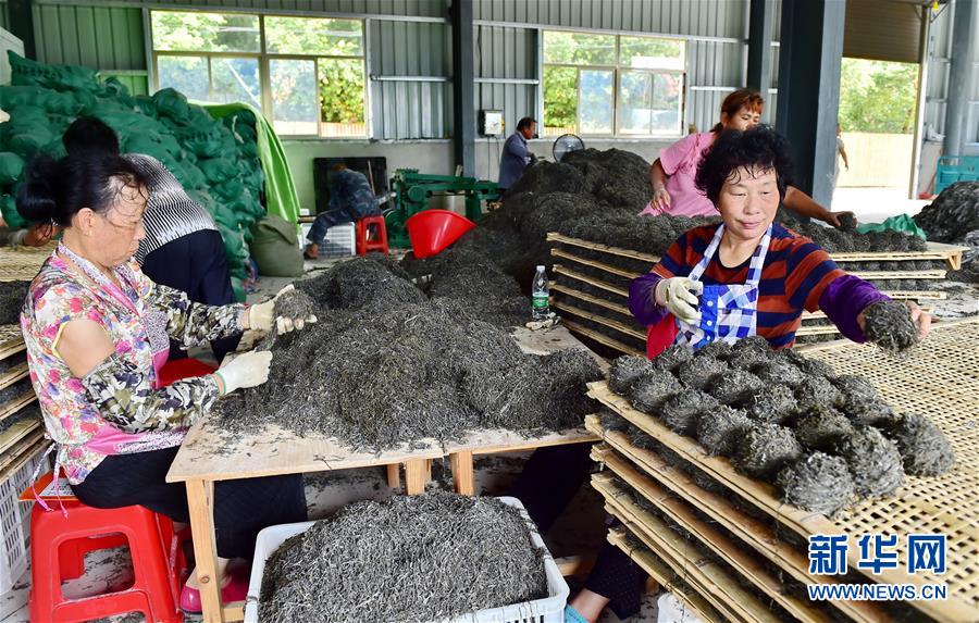 8月22日,在福安市溪邳村的海產(chǎn)品加工廠,村民對海帶進行粗加工。新華社記者林善傳攝