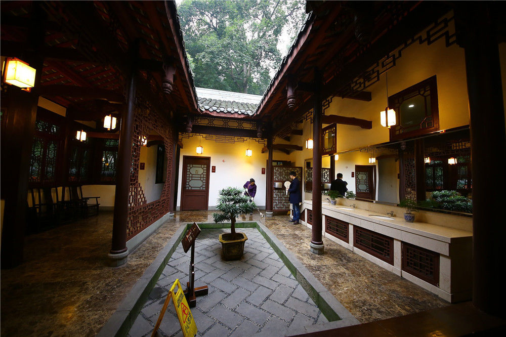 2017年01月03日,四川成都,在成都杜甫草堂景區(qū),現(xiàn)古建筑風(fēng)格式廁所。據(jù)悉,廁所內(nèi)部設(shè)有母嬰室、飲水設(shè)備、公共電話、行李寄存柜,采用古建筑風(fēng)格,為清一色的川西特色四合院。CYBS/視覺中國(guó)