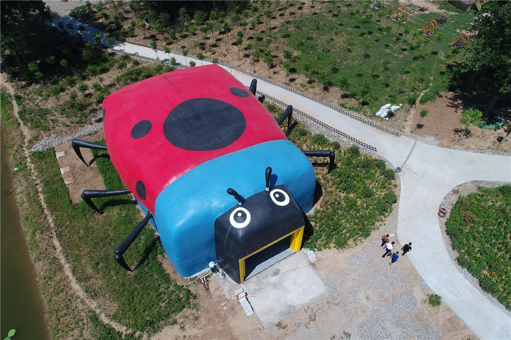 2017年7月23日,湖北省襄陽市,在一處鄉(xiāng)村農(nóng)家樂景點(diǎn)內(nèi),一座七星瓢蟲造型的公廁非常吸引眼球。供圖/視覺中國